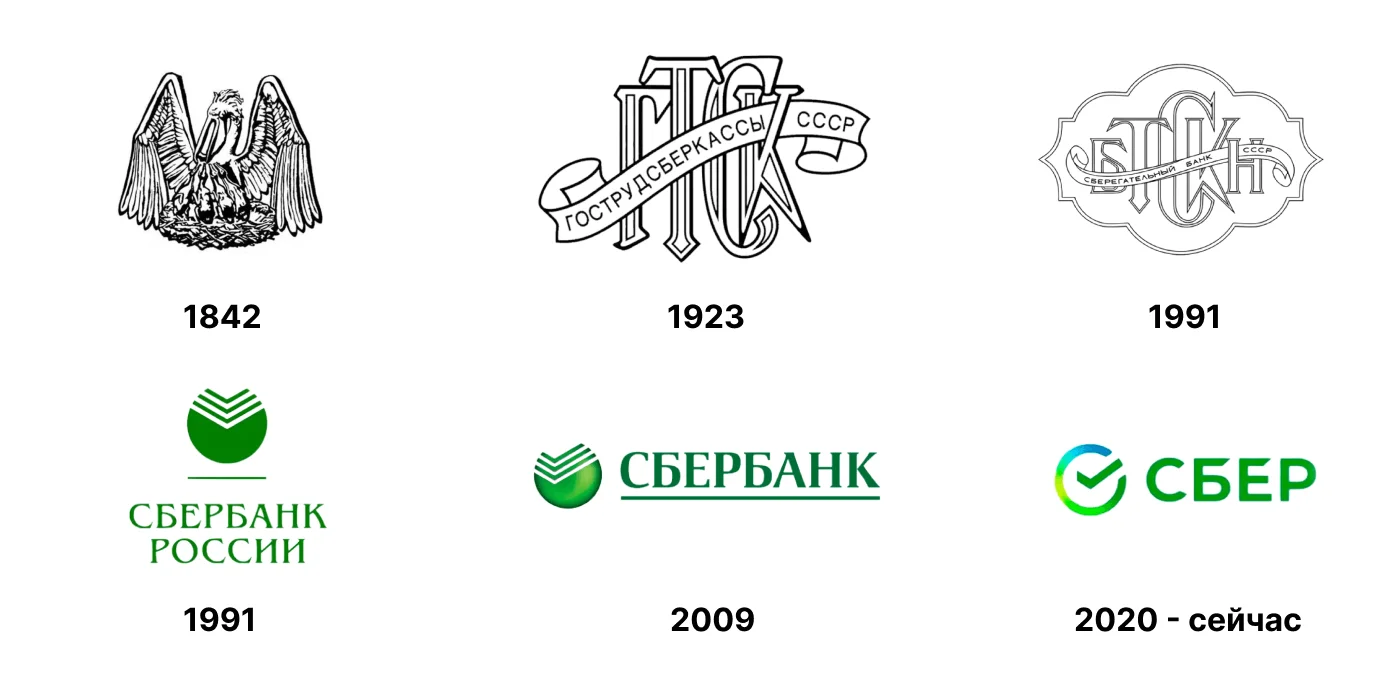 История логотипа Сбера началась еще в XIX веке. Компания называлась «Сберегательная Касса», а на логотипе был изображен пеликан. Название банка несколько раз менялось. Сначала он перешел под управление Министерства финансов. Затем закрылся и снова открылся под названием ГТСК — Государственные трудовые сберкассы. Потом, уже в СССР, банк переименовали в БТСКН — Банк трудовых сбережений и кредитования населения. Каждый раз менялся и логотип.