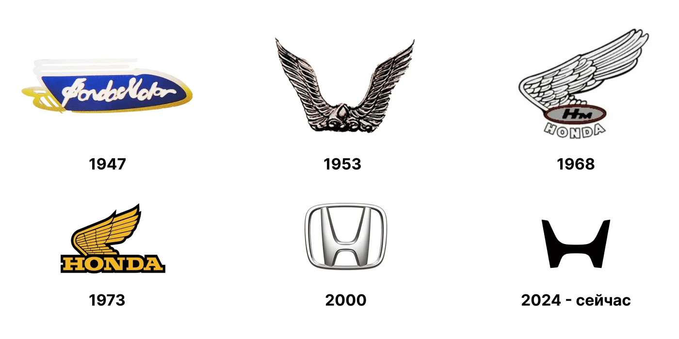 Некоторые полагают, что на логотипе компании изображена первая буква названия. Также есть версия, что это знак рукопожатия, символ доверия между покупателем и продавцом. Однако если обратиться к истории Honda, выяснится, что на первом логотипе был изображен силуэт женщины с крыльями, прототипом которой была древнегреческая богиня Ника (да, этот образ роднит Honda c Nike).