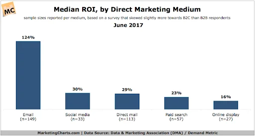 Согласно данным DMA, каждые 100 долларов, вложенные в почтовую рассылку окупаются и приносят $29 прибыли сверху. Это не так много, как у email-рассылок, но больше, чем, например, у платного поиска.