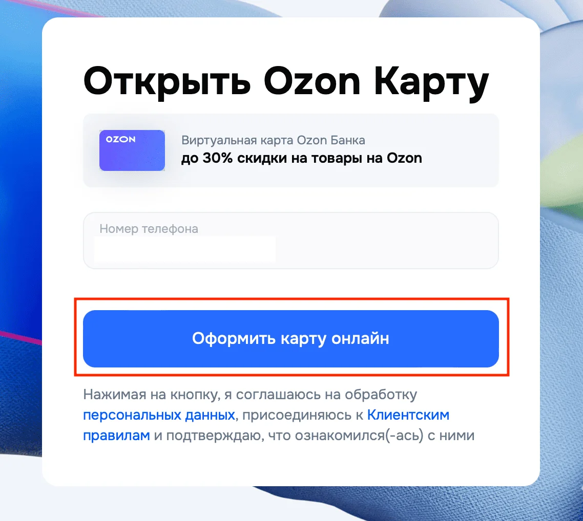 Виртуальная карта Ozon. Хоть она и называется картой, но работает как электронный кошелек. После того, как заполните короткую анкету и подтвердите номер, вам откроют анонимный счет. Чтобы повысить лимиты, надо будет пройти полную идентификацию. При желании позже сможете завести физическую карту.