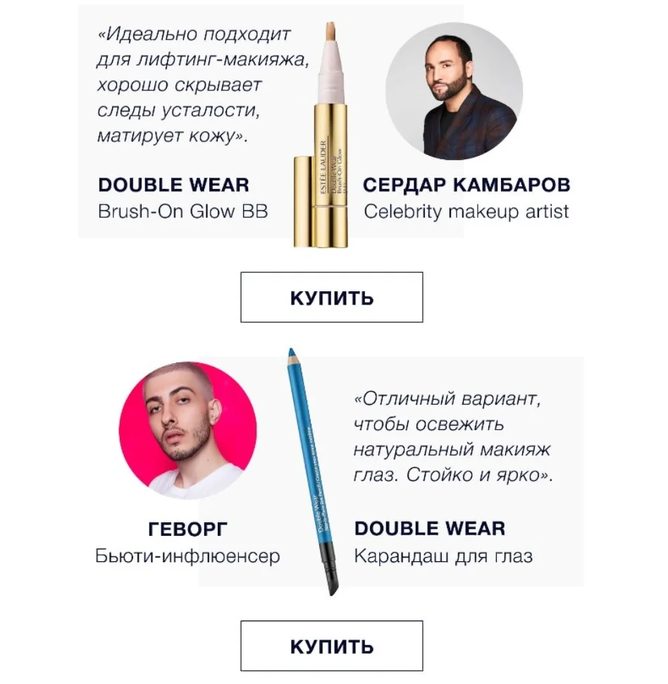 Мнение влиятельных людей можно использовать в разных форматах контента. Например, ESTEE LAUDER делится отзывами экспертов в email-рассылке.
