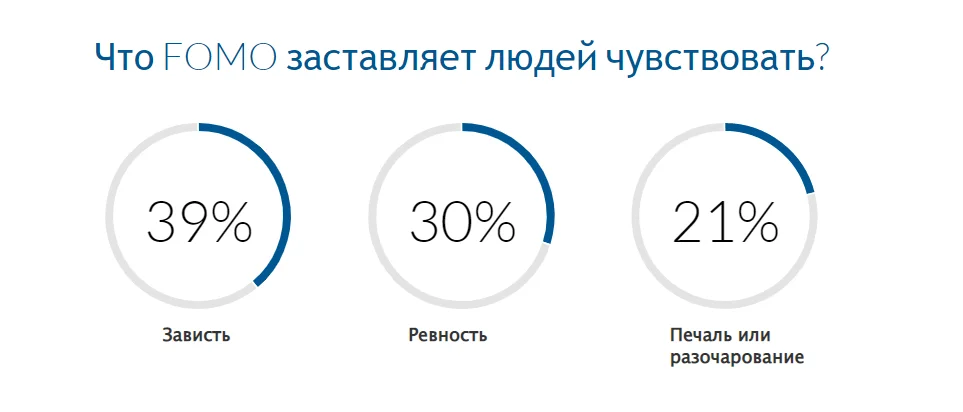 Люди с синдромом FOMO испытывают и другие сложные чувства, например: