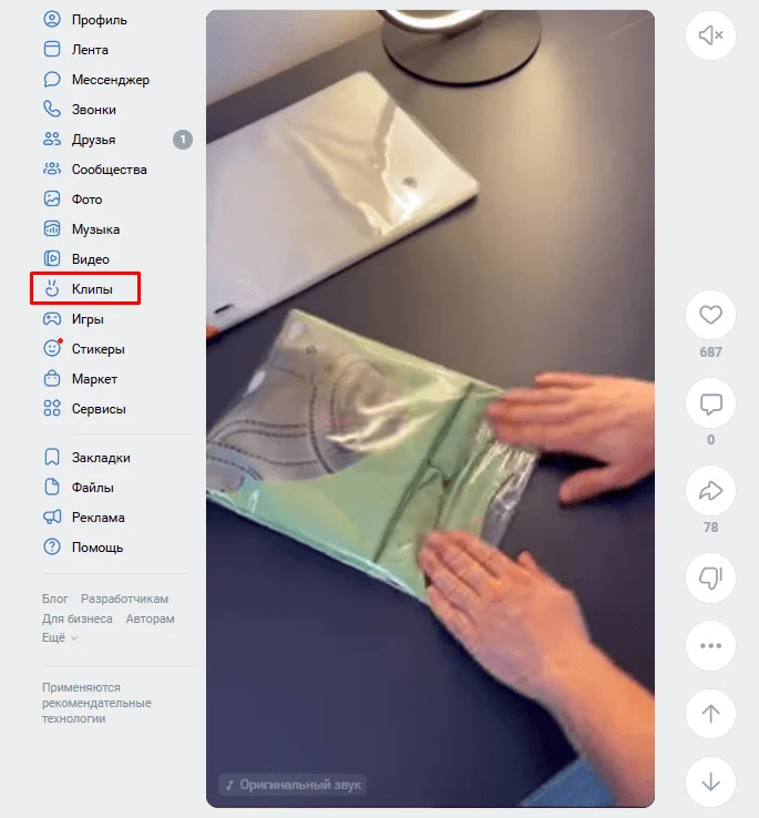 Раздел с клипами находится в приложении ВКонтакте в правом нижнем углу. А в десктопной версии к нему можно перейти через главное меню слева или по прямой ссылке.