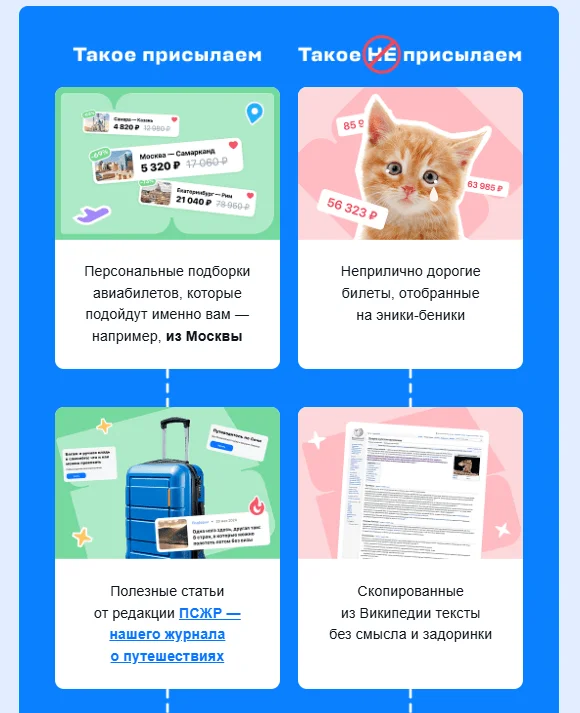 Email-рассылки. Можно отправлять читателям фрагмент текста с приглашением перейти на сайт и прочитать статью полностью или составлять подборки самых интересных материалов в конце месяца. При этом контент попадает к тёплым клиентам — тем, кто уже дал согласие на получение рассылки.