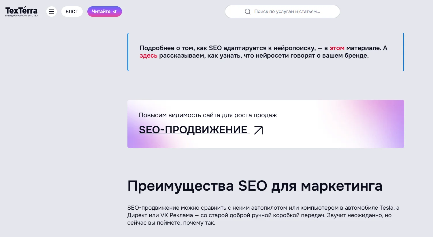 Естественная выдача в поисковиках. Для этого при подготовке текстов важно учитывать принципы SEO: подбирать и использовать в тексте ключевые слова, на страницах проставлять мета-теги, создавать логичные и структурированные тексты, использовать заголовки H2 и H3, нумерованные и маркированные списки.