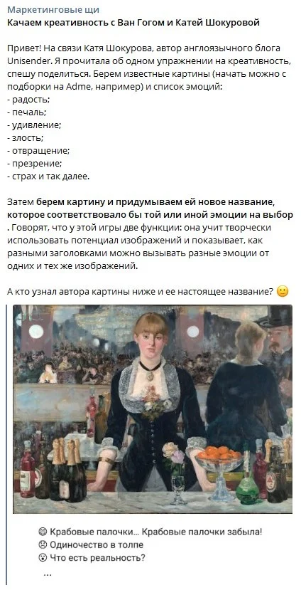 Не бойтесь тестировать новые форматы, рубрики, темы. Так и аудитория не заскучает, и вы узнаете подписчиков лучше — поймете, что им интересно.
