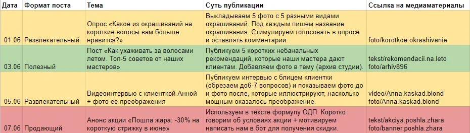 Сокращенный. Подойдет для небольших проектов и специалистов, которые хорошо разбираются в особенностях конкретной соцсети. Такой контент-план больше похож на календарь и нужен в основном, чтобы понимать, когда какой пост публиковать.
