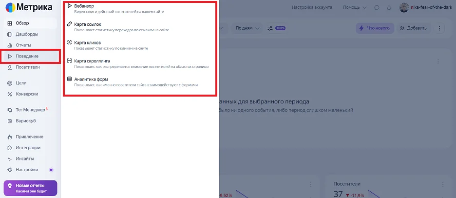 Проверить удобство сайта можно через карты кликов, скроллинга и ссылок в Яндекс Метрике. Они показывают, куда кликают пользователи, где «застревают» и на каких этапах уходят. Все отчеты находятся в разделе «Поведение» вашего счетчика.