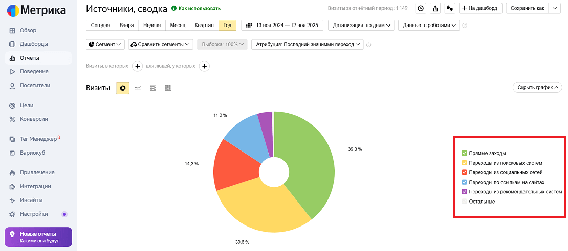 Конверсию по всем источникам трафика легко отследить в сервисах веб-аналитики — Яндекс Метрике или Google Analytics. На основе этих данных можно выяснить, какой трафик обходится вам дешевле, и принять решение, как лучше распределить бюджет на продвижение.