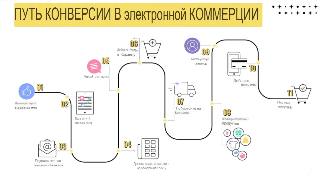 До момента реальной покупки потенциальный клиент пройдёт множество шагов. И каждый из этих шагов может повлиять на решение о покупке.