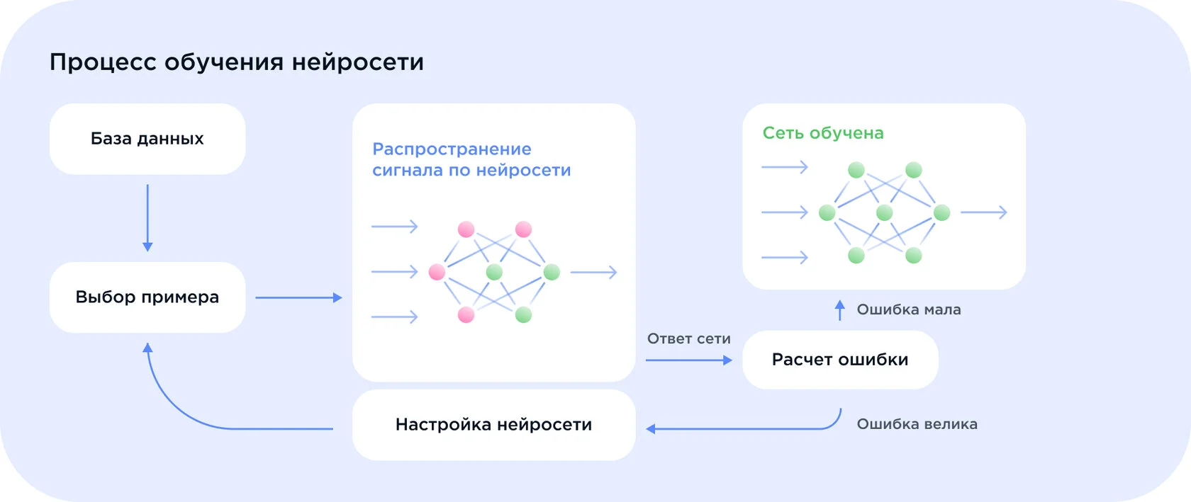 Обучение моделей нейросетей состоит из этапов: