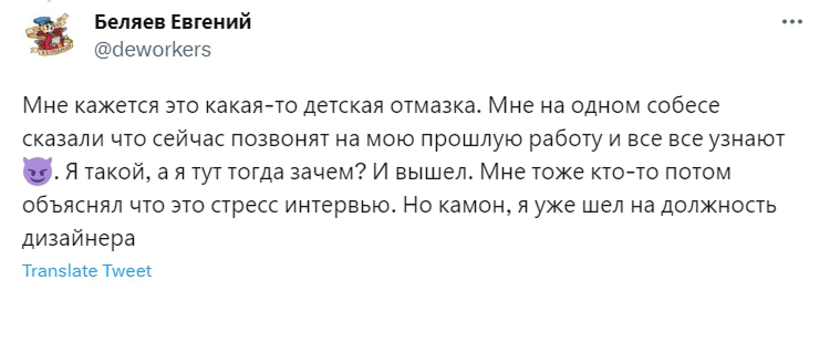 Правда, Алина Пенчук другого мнения. Она считает, что на стресс-интервью даже не нужно приходить. А если вы узнали о нём в процессе — можете уходить с собеседования.