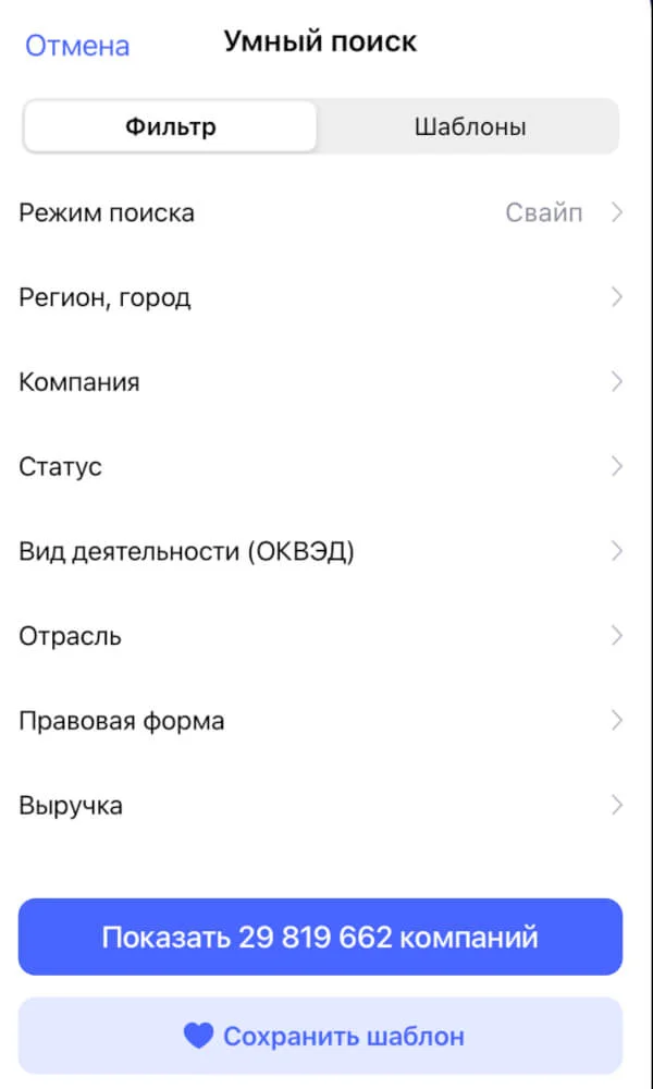 А если вы постоянно ищете похожие компании, то можно сохранить шаблон поиска, чтобы в будущем не тратить на это время.