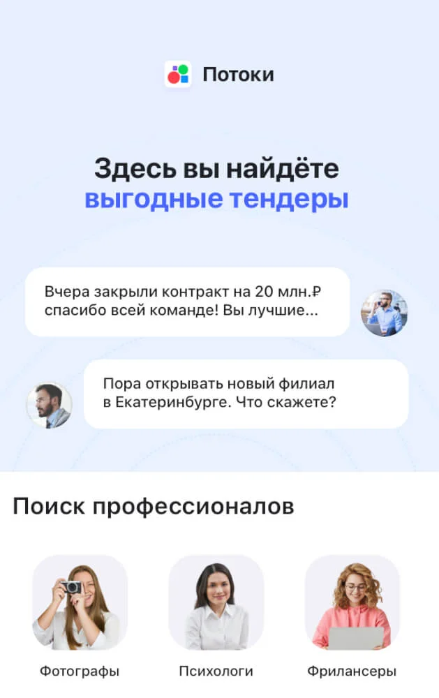 Предприниматели ищут партнёров, заказчиков, сотрудников.