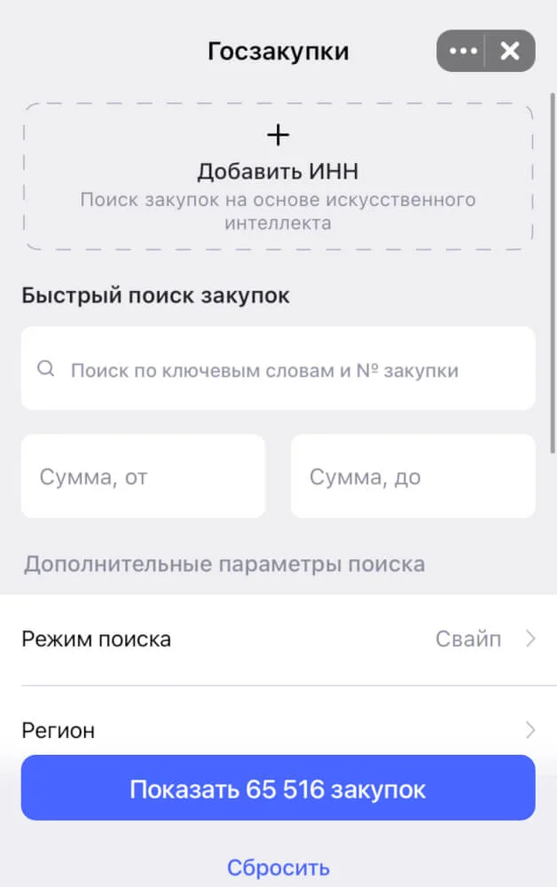 В TenChat можно искать не только людей, но и компании. Это можно делать по названию, адресу, ФИО, ОГРН и ИНН. Есть режим умного поиска, в котором настроек для поиска больше — они на фото.