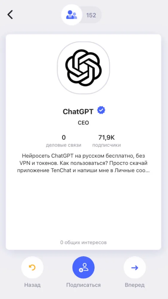 В TenChat собрались люди более 1000 должностей, и благодаря поиску и подписке на определенные тематики контента практически каждый может познакомиться с людьми, которые принесут пользу вашему бизнесу.