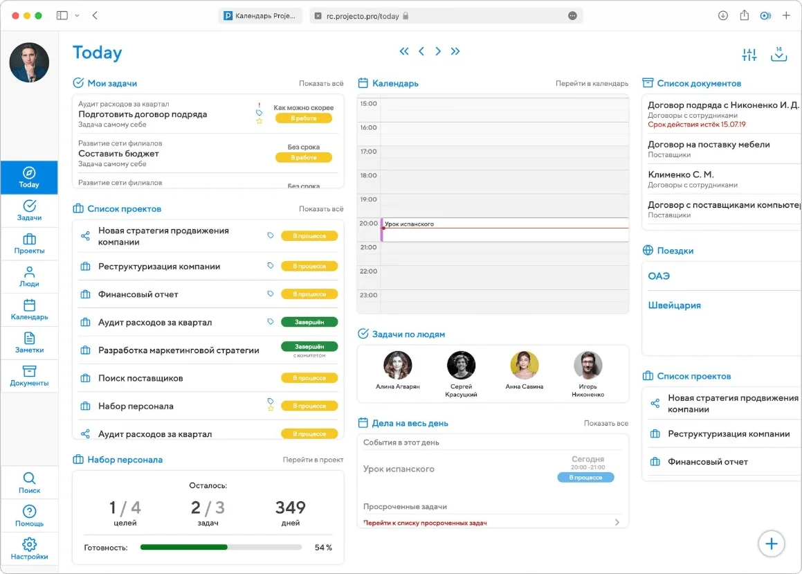 Система управления проектами и задачами. Обладает широким функционалом: ведение документооборота, составление оргструктуры и планирование дел с помощью календаря. Есть веб-версия, десктопная для macOS и мобильные приложения на Android и iOS.