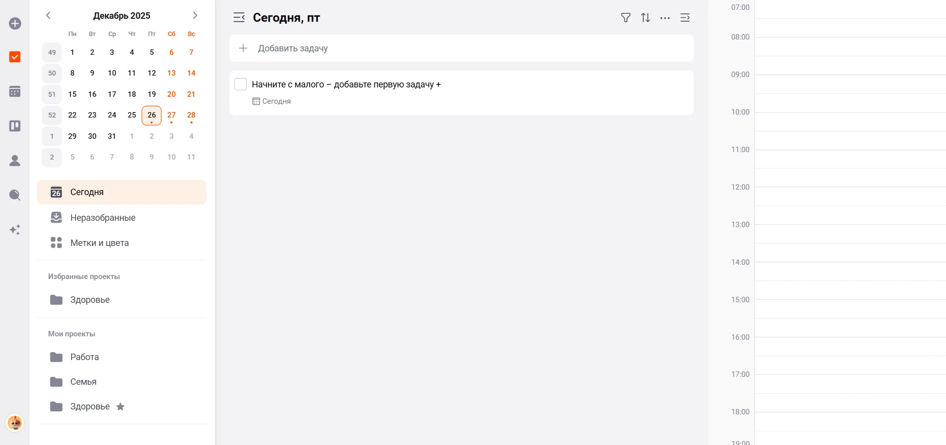Программа для планирования дел и управления проектами. Подойдет для личного использования и для совместной работы. Есть мобильное приложение, десктопная и веб-версия. На всех платформах отображается панель ежедневника и встроенный календарь. В ежедневнике можно составить расписание на день, а календарь позволяет просмотреть список дел на любую дату.