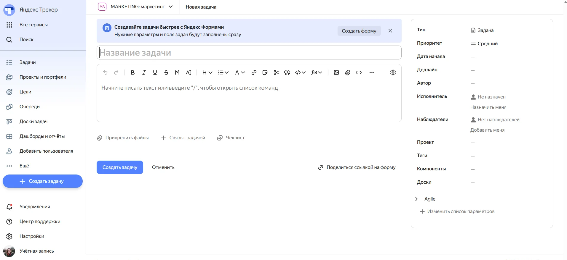 Можно создать и автоматизировать процесс с нуля либо использовать один из готовых шаблонов, например, для маркетинга, дизайна и согласования договоров. Также использовать API для обмена информацией между Tracker и сторонними системами.