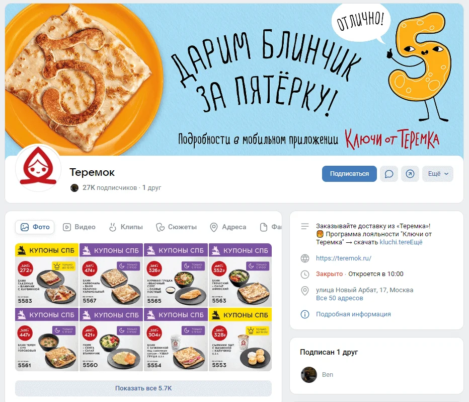 Оформление паблика ВКонтакте сети кафе «Теремок»