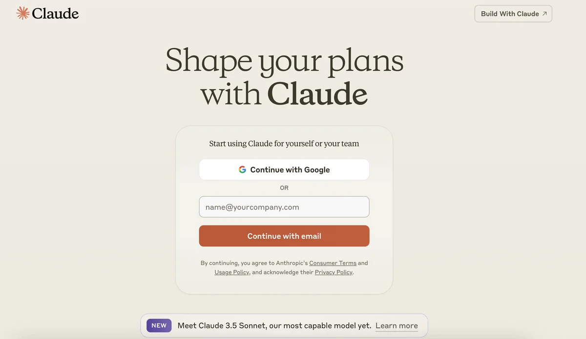 Перейдите на сайт Claude под IP-адресом одной из 159 стран с открытым доступом к сервису. Зарегистрируйтесь с помощью электронной почты или аккаунта в Google.