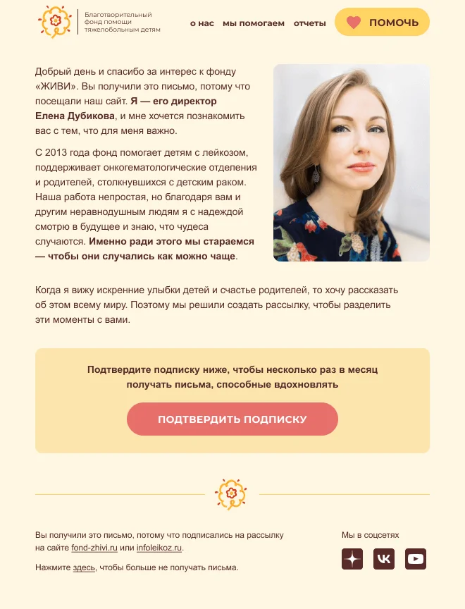 Меня зовут Елена Дубикова, я исполнительный директор Благотворительного фонда помощи тяжелобольным детям «ЖИВИ».