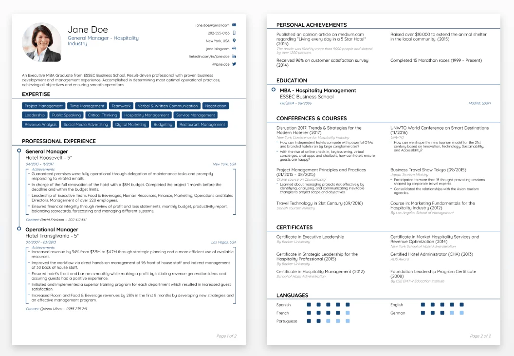 Объём резюме — 1-2 страницы формата A4. Идеально, если вся информация умещается на один лист. Это повышает вероятность прочтения, поскольку многие рекрутеры при первоначальном изучении просматривают мельком лишь первую страницу.