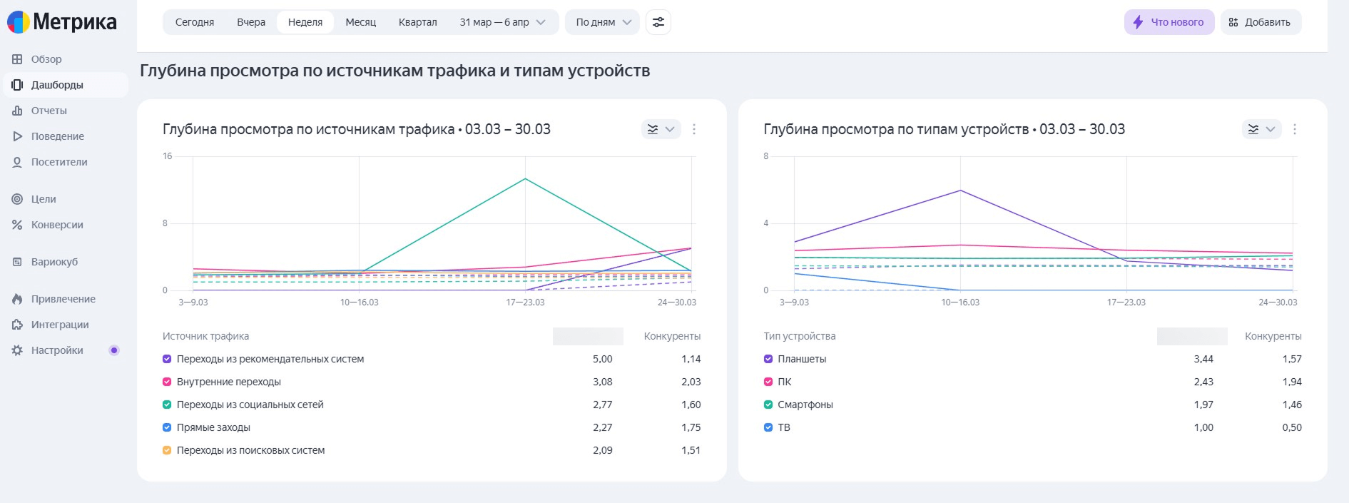 Для представления маркетинговых данных подходит Яндекс Метрика. С её помощью маркетолог может визуализировать данные и получать автообновляемый отчёт, а также делиться им с заинтересованными лицами.