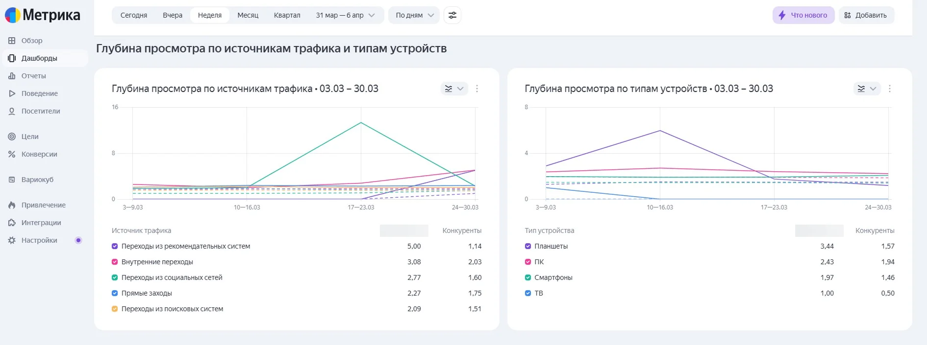 В Google Analytics маркетолог может увидеть показатели в динамических отчётах: