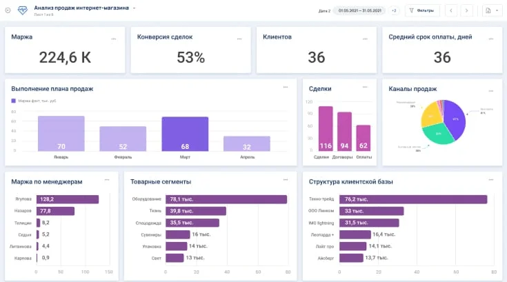 Отчёты для анализа бизнес-метрик называют BI-системами. Они позволяют объединять внешние и внутренние данные компании, получить максимально полную картину и повышать эффективность в принятии решений.