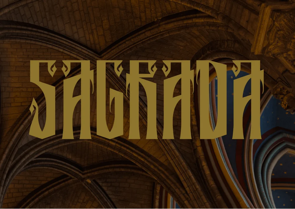 Sagrada подойдет, если в вашем дизайне нужен исторический или религиозный оттенок. Например, для титульных страниц книг, айдентики музейных выставок, афиш религиозных мероприятий и архитектурных презентаций.