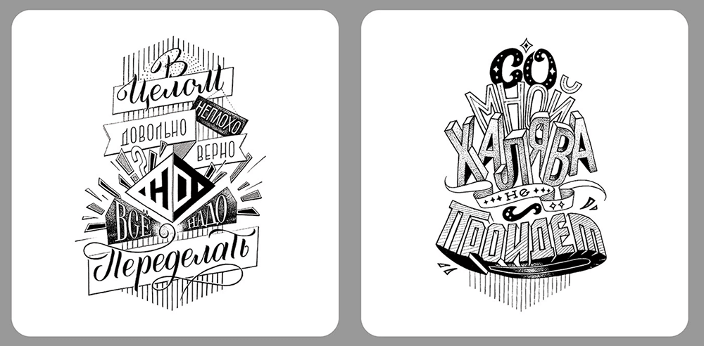 Разнообразные варианты написание букв часто используют в леттеринге: