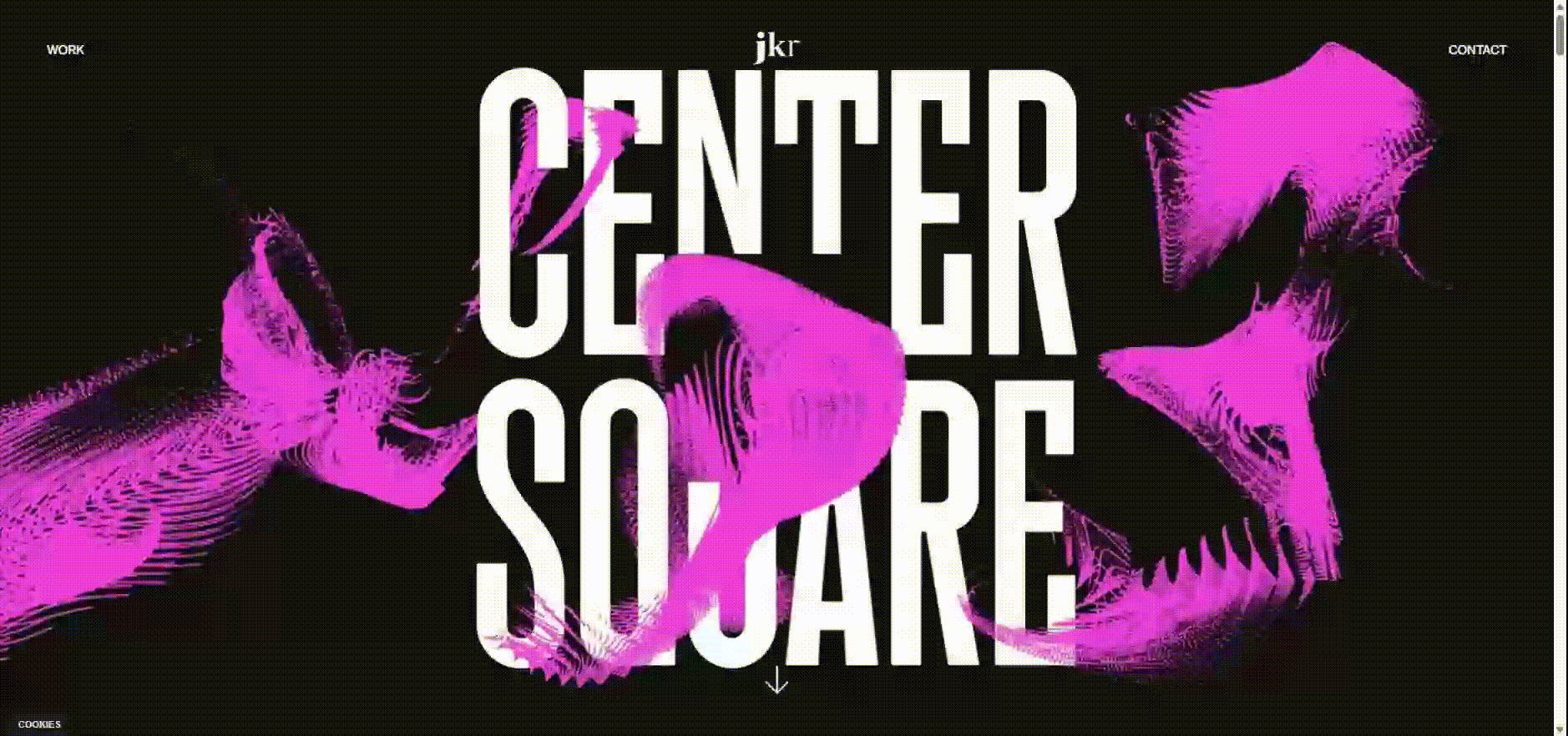 Анимированный логотип Center Square, в котором обыгрывается название. Посередине текстового блока — пустой квадрат, внутри которого запускается анимация.