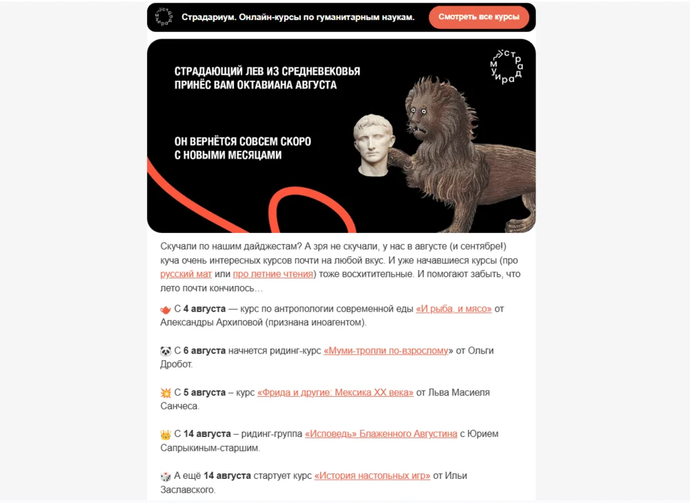 Повторяйте кнопку внизу письма, если оно длинное. Иногда письма получаются большими: дайджесты, продуктовые подборки, инструкции. Если кнопка встречается только в начале, она теряется по ходу чтения. А если только внизу — не все до неё дойдут.