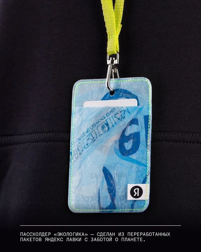 Но самое интересное происходит дальше: из переработанного пластика Яндекс делает мерч — картхолдеры и поясные сумки, которые можно купить. Только в 2023 году пользователи вернули курьерам 24 тонны пакетов, которые не попали на полигон, а стали новыми вещами.