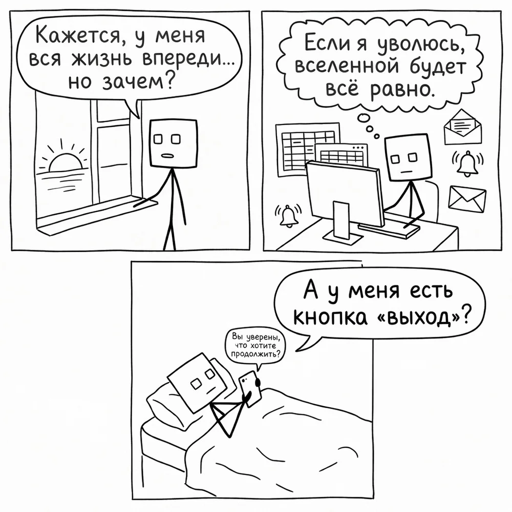 Если в последнее время эти мысли звучат в голове все чаще, вызывают тревогу, апатию или ощущение внутренней пустоты, стоит сделать паузу и выдохнуть. С вами не происходит ничего «ненормального». Скорее всего, вы столкнулись с экзистенциальным кризисом — непростым, но естественным этапом жизни.