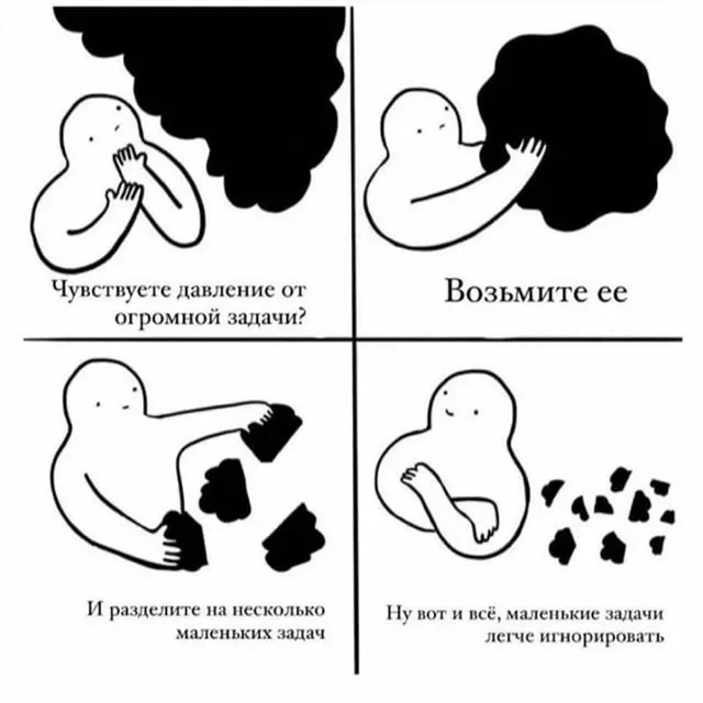 Вот висит некая задача, которую нужно сделать, но совсем не хочется / не знаешь, с какого конца к ней подойти. Время идёт, тревожность растёт, но переключаешься на всё что угодно, кроме этой самой задачи. Знакомо? Жиза?