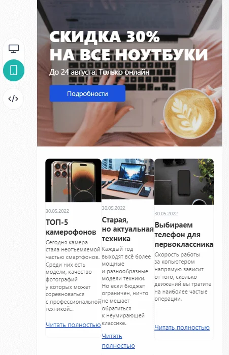 Если не уверены в своих силах, лучше верстайте письма из готовых блоков — так письмо точно будет корректно отображаться на всех устройствах.