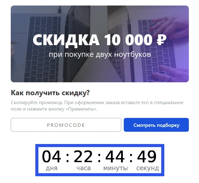 К письму можно добавить таймер, который будет автоматически отсчитывать время до указанного события: конца акции, старта продаж, окончания действия промокода. Таймер используют для предложений с ограниченным сроком, чтобы стимулировать пользователей быстрее сделать заказ: рассылки с таймером могут давать на 400% больше переходов и на 171% больший CTOR (Click to Open Rate).