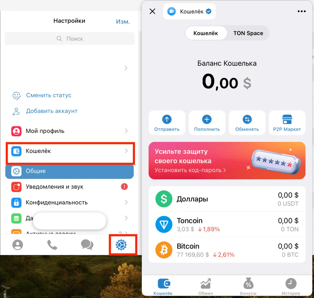 Все покупки на платформе осуществляются через криптовалюту Toncoin. Поэтому, чтобы что-то купить или продать, нужен криптокошелек с нужной цифровой валютой. Ее можно обменять за рубли на криптобиржах вроде Binance или OKX, или во внутреннем кошельке Telegram. В него встроена P2P-платформа для покупки Toncoin.
