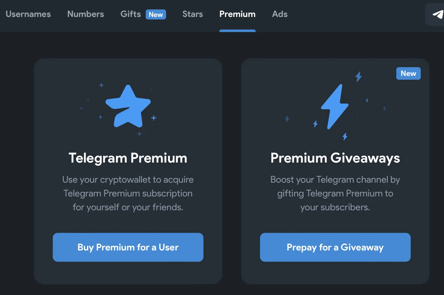 Система аукциона распространяется только на никнеймы, номера и подарки. Подписки на Telegram Premium, рекламу и звезды можно купить за фиксированную сумму, как в любом онлайн-магазине.