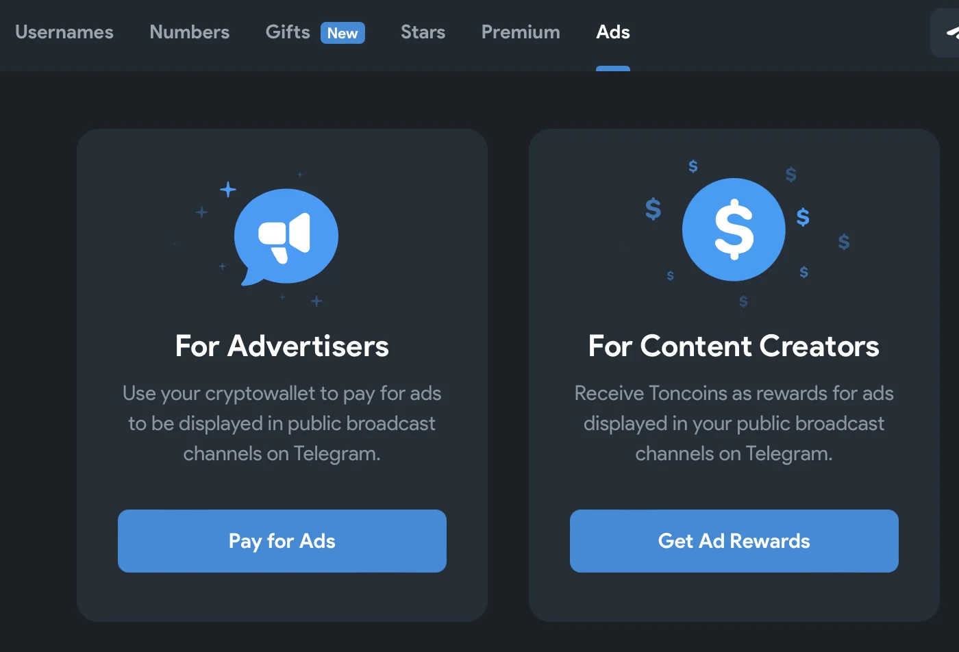 Владельцы закрытых каналов могут вывести через платформу вознаграждение за рекламу по фиксированной ставке в 50% дохода от отображаемой рекламы. Но сделать это можно только в TON и при условии, что канал соответствует требованиям Telegram.