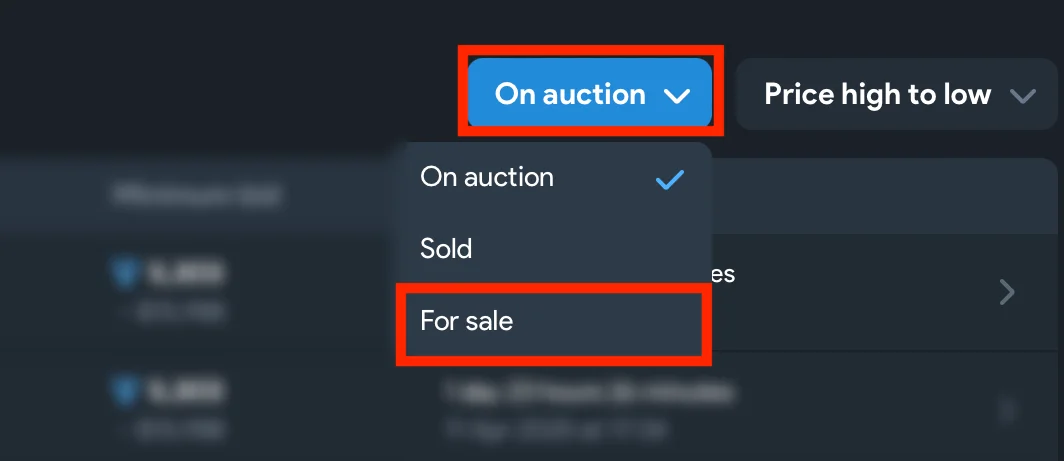 Обратите внимание, что в разделах Usernames, Numbers и Gifts отображаются все лоты, включая уже проданные. Чтобы посмотреть только актуальные предложения, в фильтре выберите For Sale.
