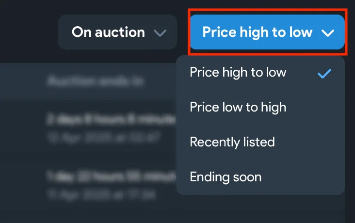 Также можно отсортировать лоты по цене, дате публикации на платформе и сроку окончания аукциона.