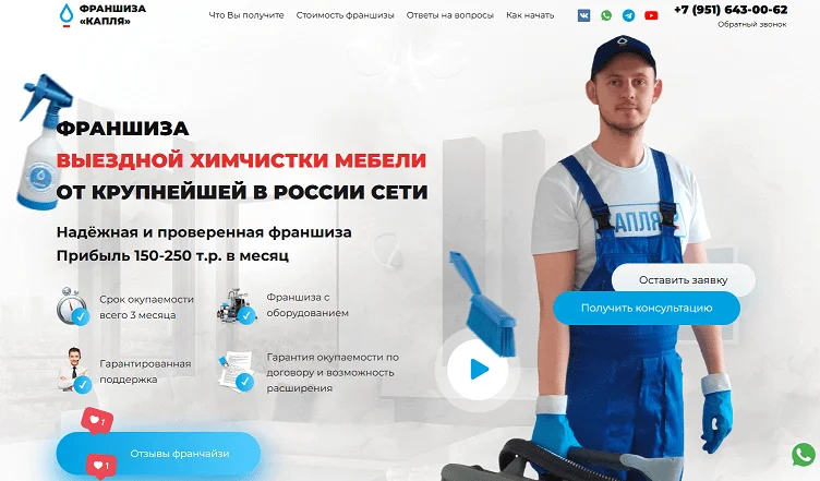Примеры франшиз: Клиндо, Братья Чистовы, Капля, Чисто-Чисто