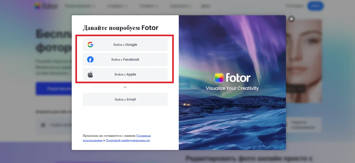 Переходите на официальный сайт, нажимаете на кнопку «Редактировать фото» или «Войти» и заводите новый аккаунт.