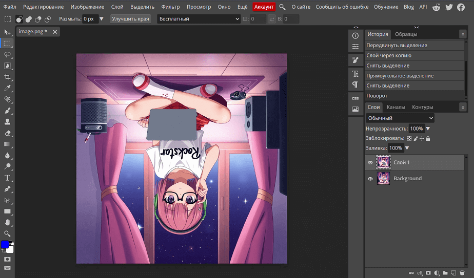 Удалять фон или отдельные объекты. Инструменты выделения и клонирования позволяют аккуратно убрать лишнее, заменить фон на прозрачный или цветной. В отличие от большинства онлайн-фоторедакторов, которые используют AI-инструменты, эту функцию в Photopea можно использовать бесплатно.