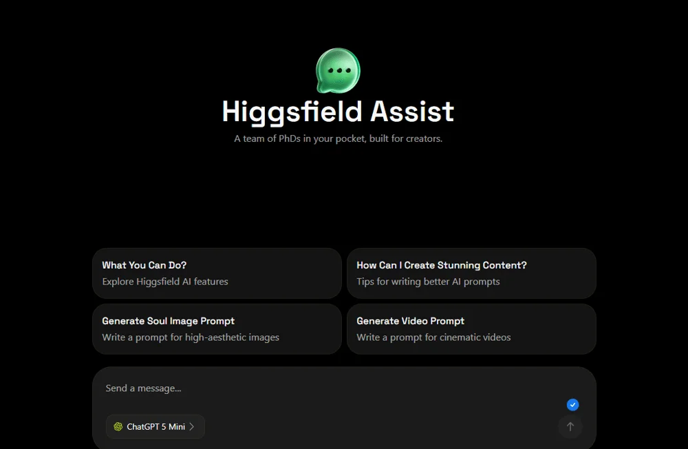 Assist. Это чат-бот, который поможет разобраться с платформой и создать ролики. Например, его можно просить составить или улучшить промпты, придумать идеи и объяснить параметры настройки.