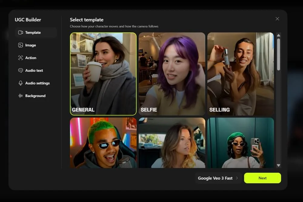 UGC Builder. Сервис пошагово проведет вас к созданию видео: от выбора типа съемки до составления промпта для фона. Также нужно будет загрузить картинку, которую предстоит оживить. И описать действие, которое аватар будет совершать в кадре. Добавить текст и озвучку.