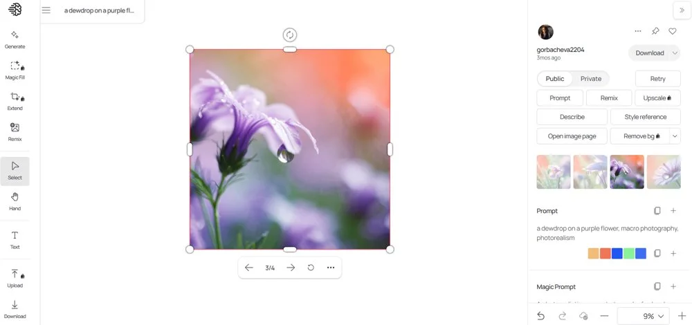 Шаг 4. Используйте Magic prompt. Magic Prompt — это ИИ-ассистент, который дополняет промпт деталями. На панели можно выбрать три режима: